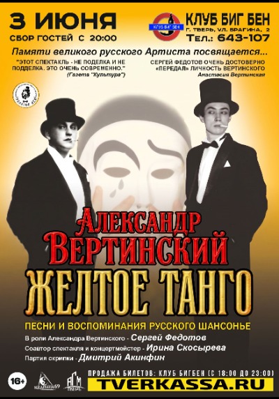 Спектакль "АЛЕКСАНДР ВЕРТИНСКИЙ. ЖЕЛТОЕ ТАНГО"